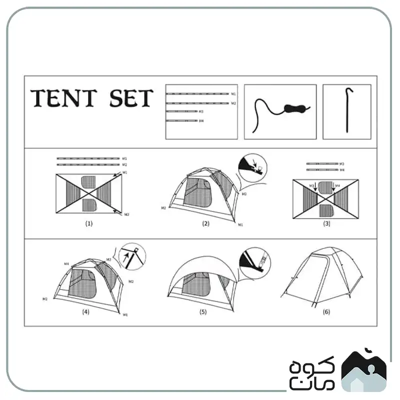 - ساختار و نصب: چهار تیرکه ای، نصب سریع با دو تیرک اصلی و دو تیرک کوچک برای سقف.