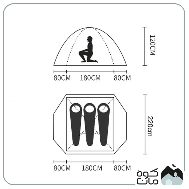 - نوع و ظرفیت: چادر گنبدی برای 2 نفر، مناسب کوهنوردی، کمپینگ و سفر.