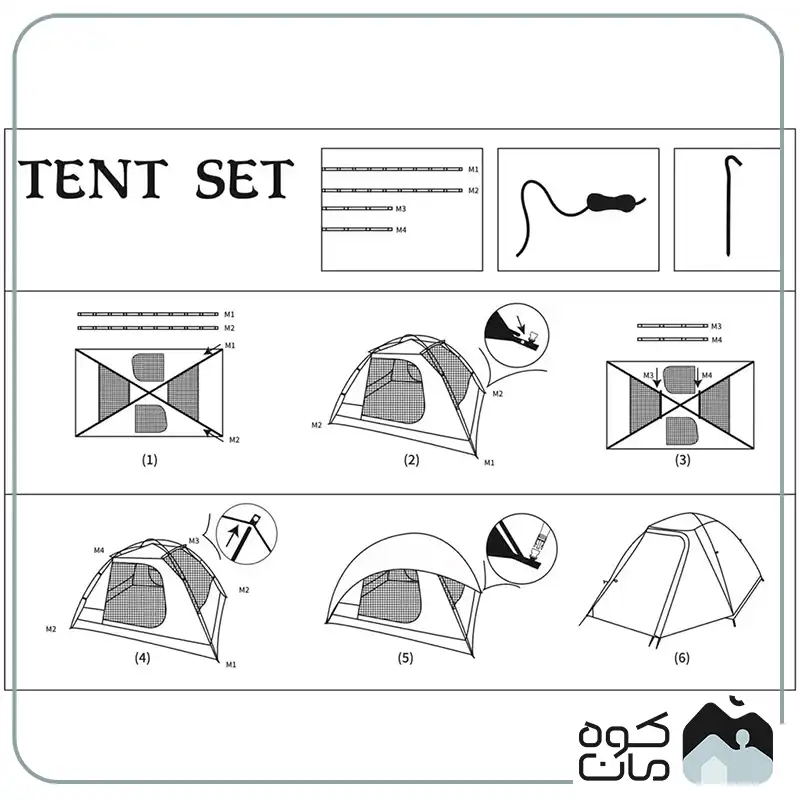 | فضای کافی برای ۴ نفر | طراحی گنبدی با تیرک آلومینیومی، ظرفیت مناسب برای خانواده یا گروه |