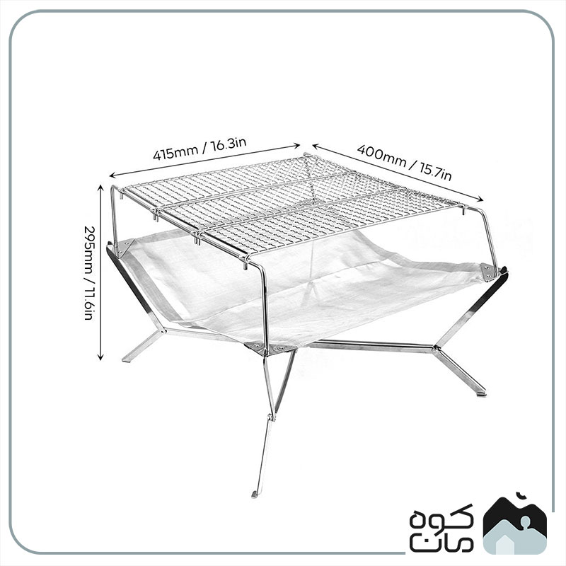 - ابعاد مناسب: ابعاد میز در حالت باز به اندازه کافی بزرگ است تا فضای کافی برای پخت و پز فراهم کند، اما در عین حال به اندازه کافی کوچک است تا به راحتی حمل شود.