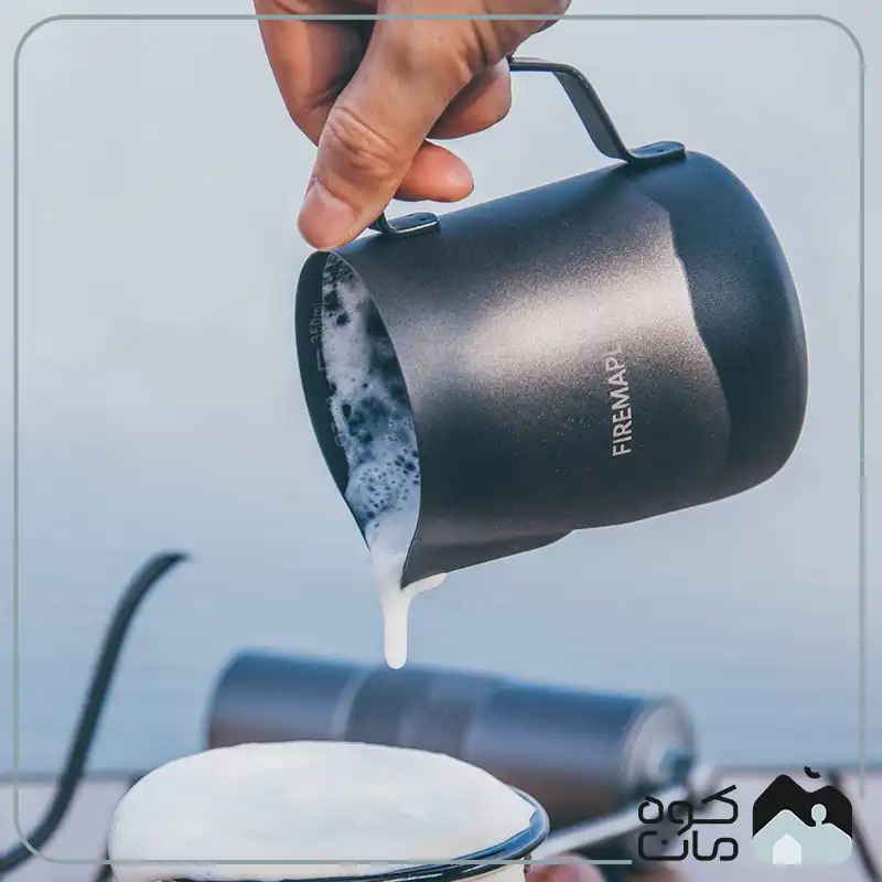 - گرم کردن شیر: شیر را با استفاده از بخار دستگاه اسپرسو ساز یا روی شعله ملایم گرم کنید تا به دمای مطلوب برسد (حدود 60–65 درجه سانتی گراد).