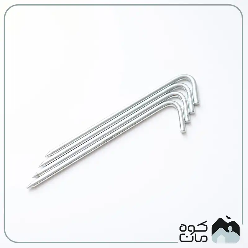 - زاویه مناسب:بهتر است میخ را با زاویه حدود 45 درجه نسبت به زمین و در جهت مخالف کشش طناب چادر فرو کنید تا بیشترین استحکام را داشته باشد.