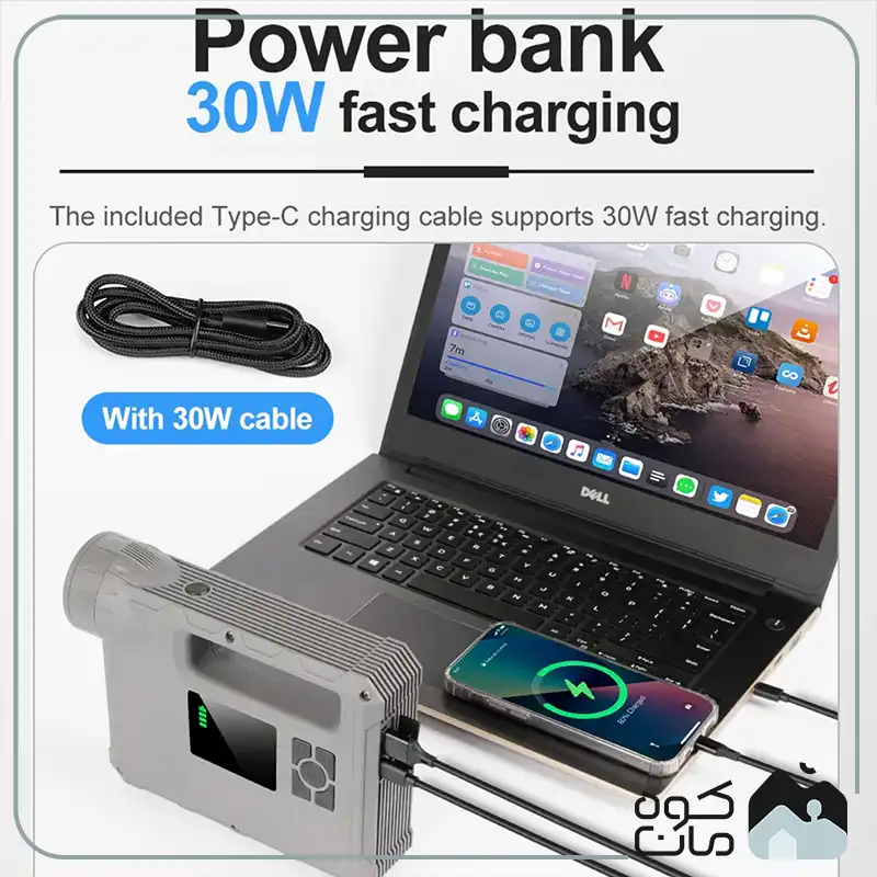 - پاوربانک و شارژ سریع دستگاه های الکترونیکی: تأمین انرژی گوشی، تبلت و سایر وسایل با خروجی فست شارژ USB QC3.0 و ورودی TYPE-C.