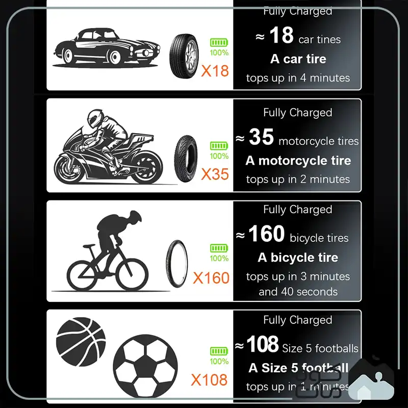 - جامپ استارتر خودرو: راه اندازی سریع باتری خودرو در شرایط اضطراری.