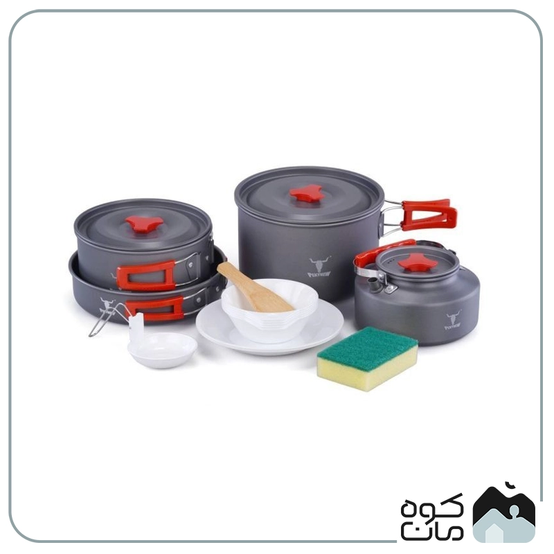 - ۱ قابلمه بزرگ با ظرفیت ۳ لیتر/ ۱ قابلمه متوسط با ظرفیت ۲ لیتر/ ۱ کتری با ظرفیت ۱.۱ لیتر/ ۱ ماهیتابه با حجم ۰.۹ لیتر/ ۵ عدد کاسه پلاستیکی/۲ عدد بشقاب/ ۱ عدد ملاقه/ ۱ عدد قاشق چوبی/۱ عدد کفگیر/۱ عدد اسکاج/۱ عدد کاور توری مخصوص حمل