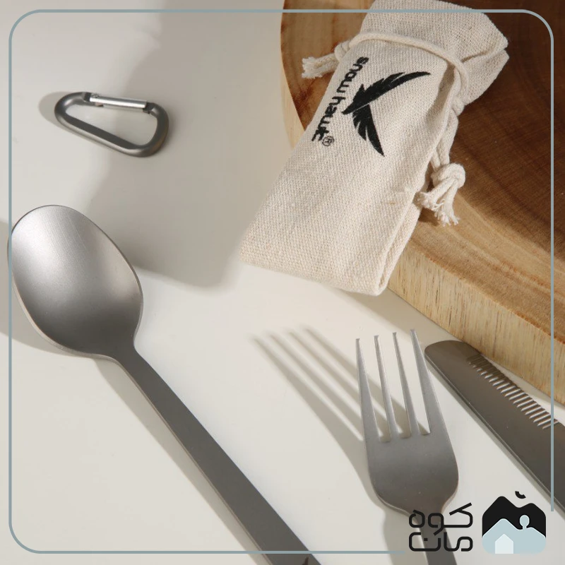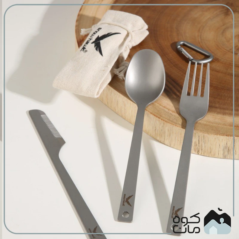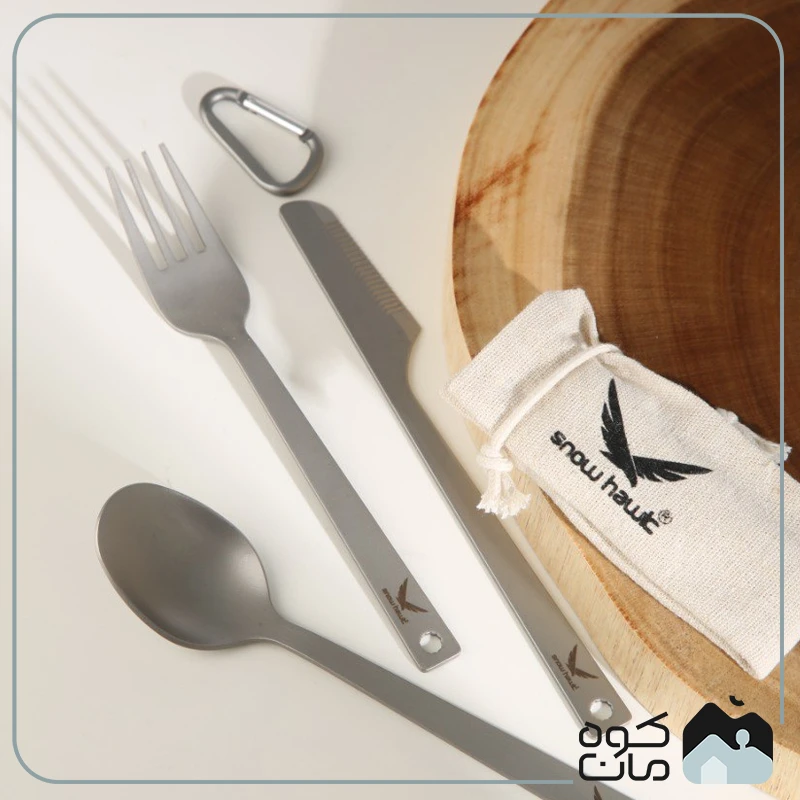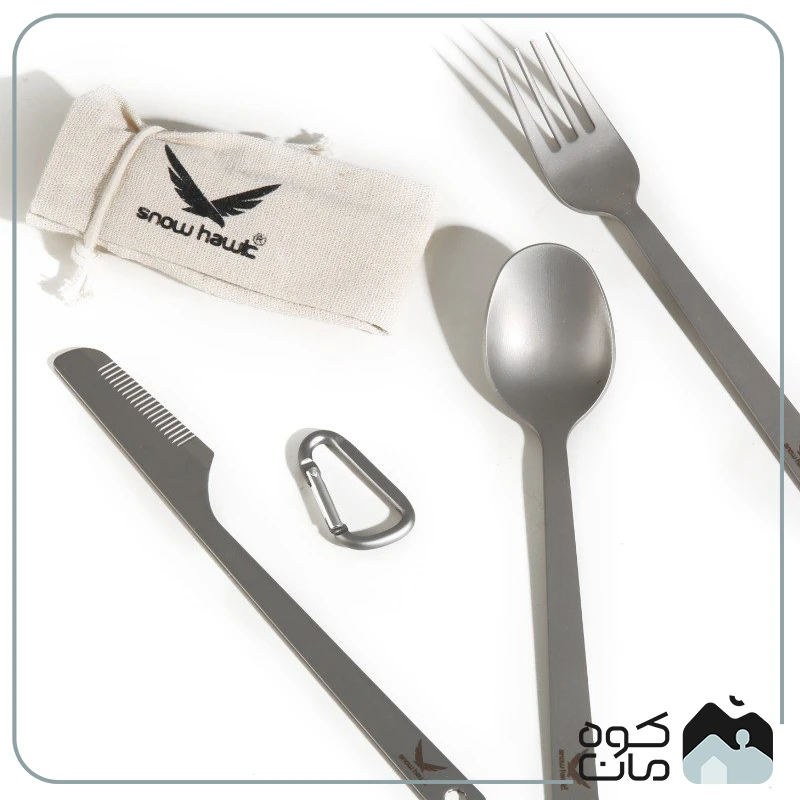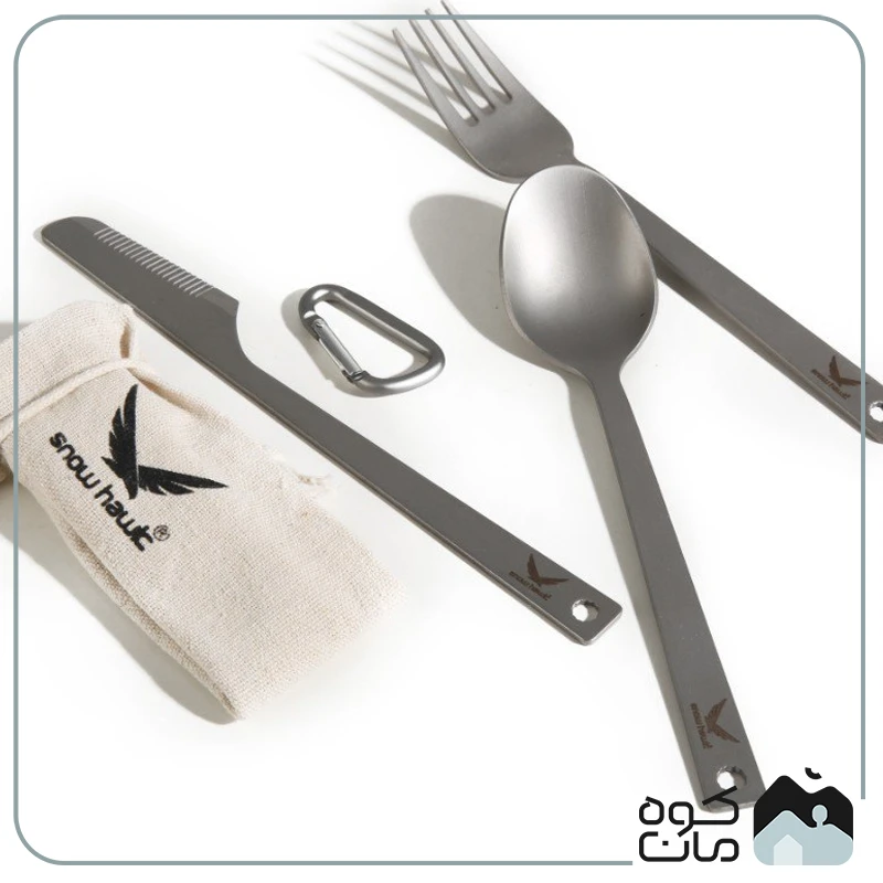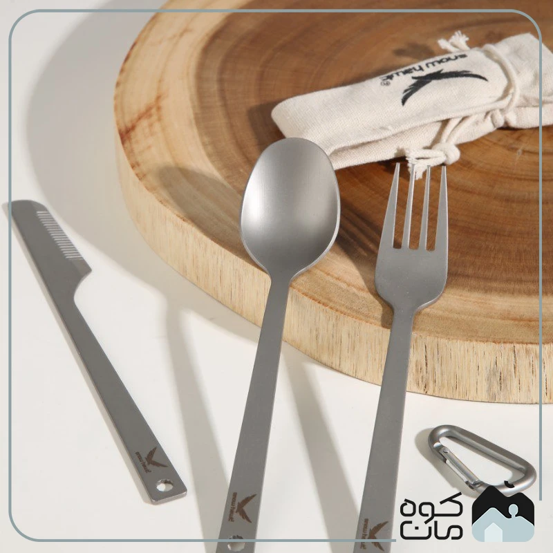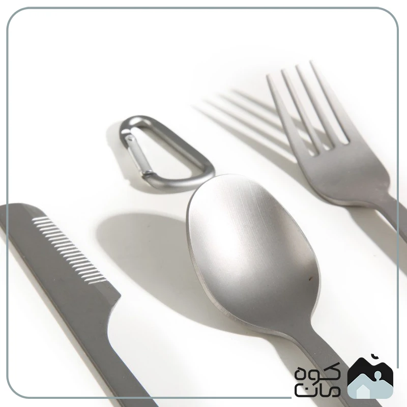 - ست کامل ابزار ها: شامل قاشق، چنگال، چاقو، کارابین و کاور حمل برای دسترسی راحت به تمام ابزار های ضروری.