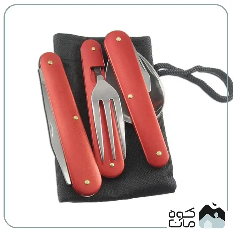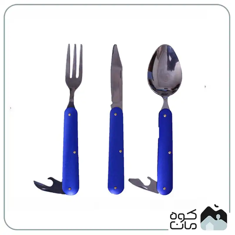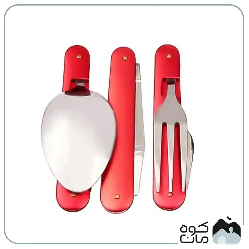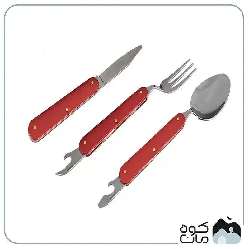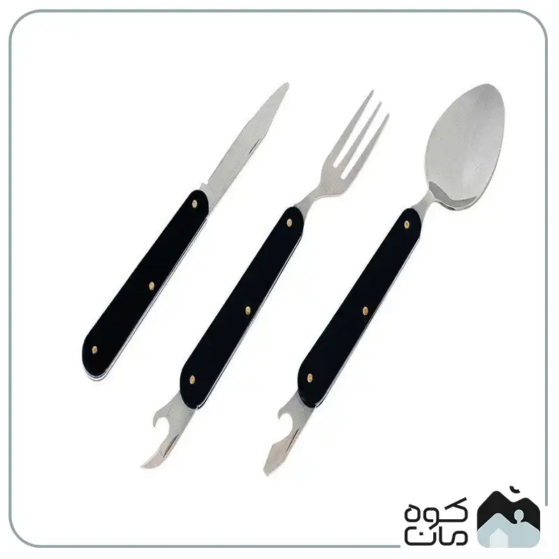 - کاربرد چند منظوره: شامل قاشق، چنگال، چاقوی تاشو و دربازکن است؛ بنابراین تمام نیاز های شما برای صرف غذا در سفر و کمپینگ را پوشش می دهد.