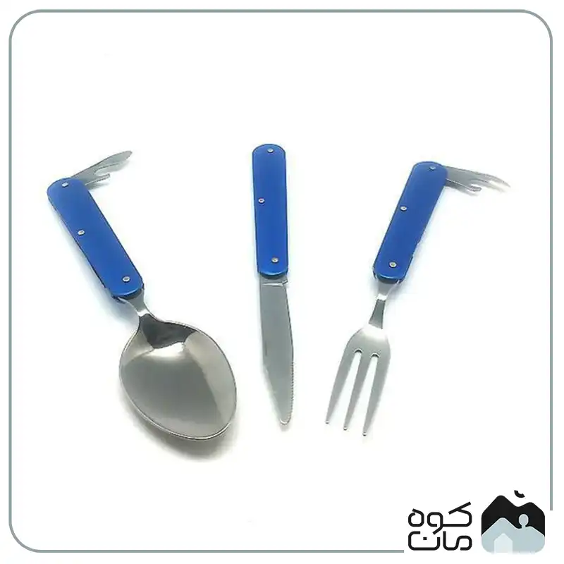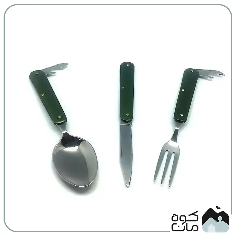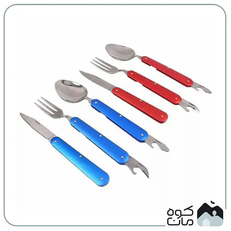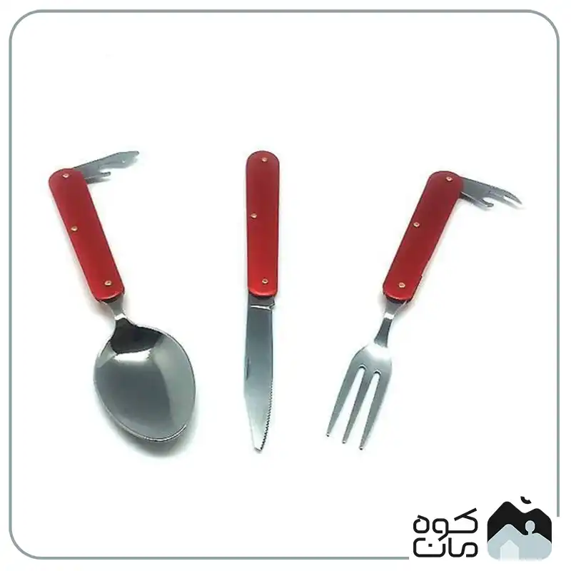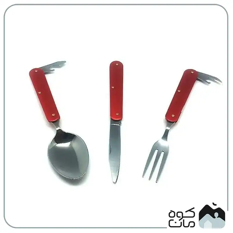 - کاربرد چند منظوره: شامل قاشق، چنگال، چاقوی تاشو و دربازکن است؛ بنابراین تمام نیاز های شما برای صرف غذا در سفر و کمپینگ را پوشش می دهد.